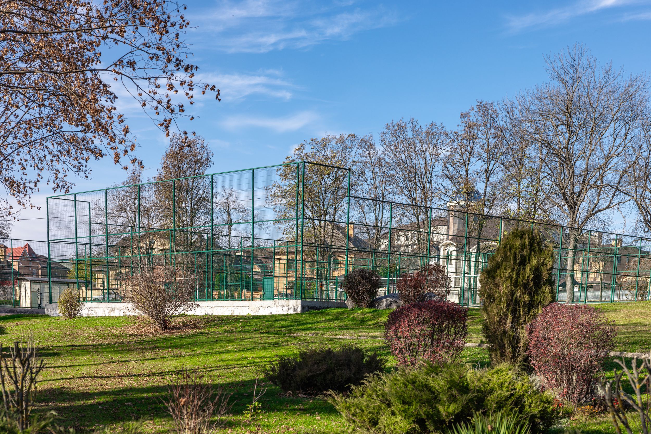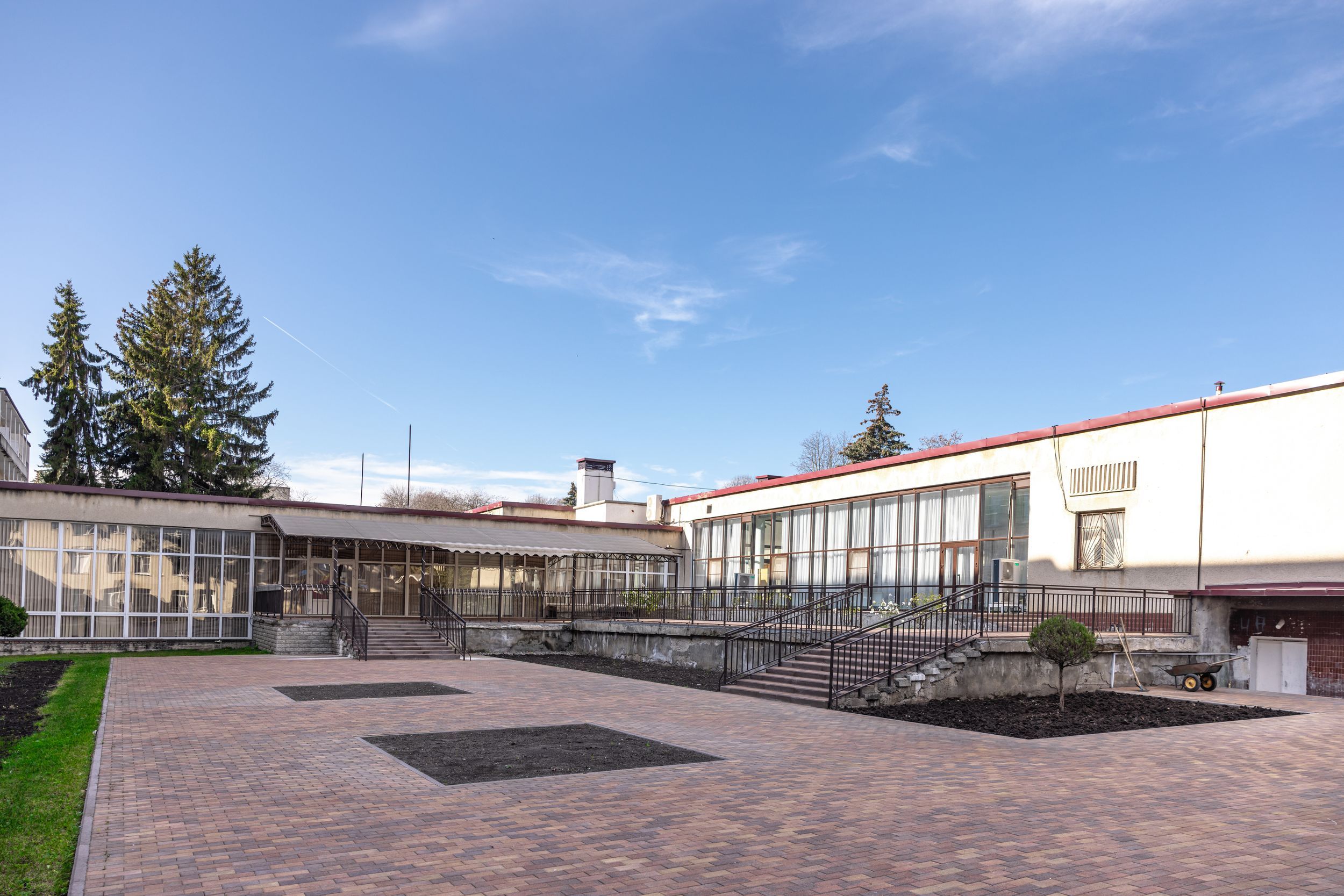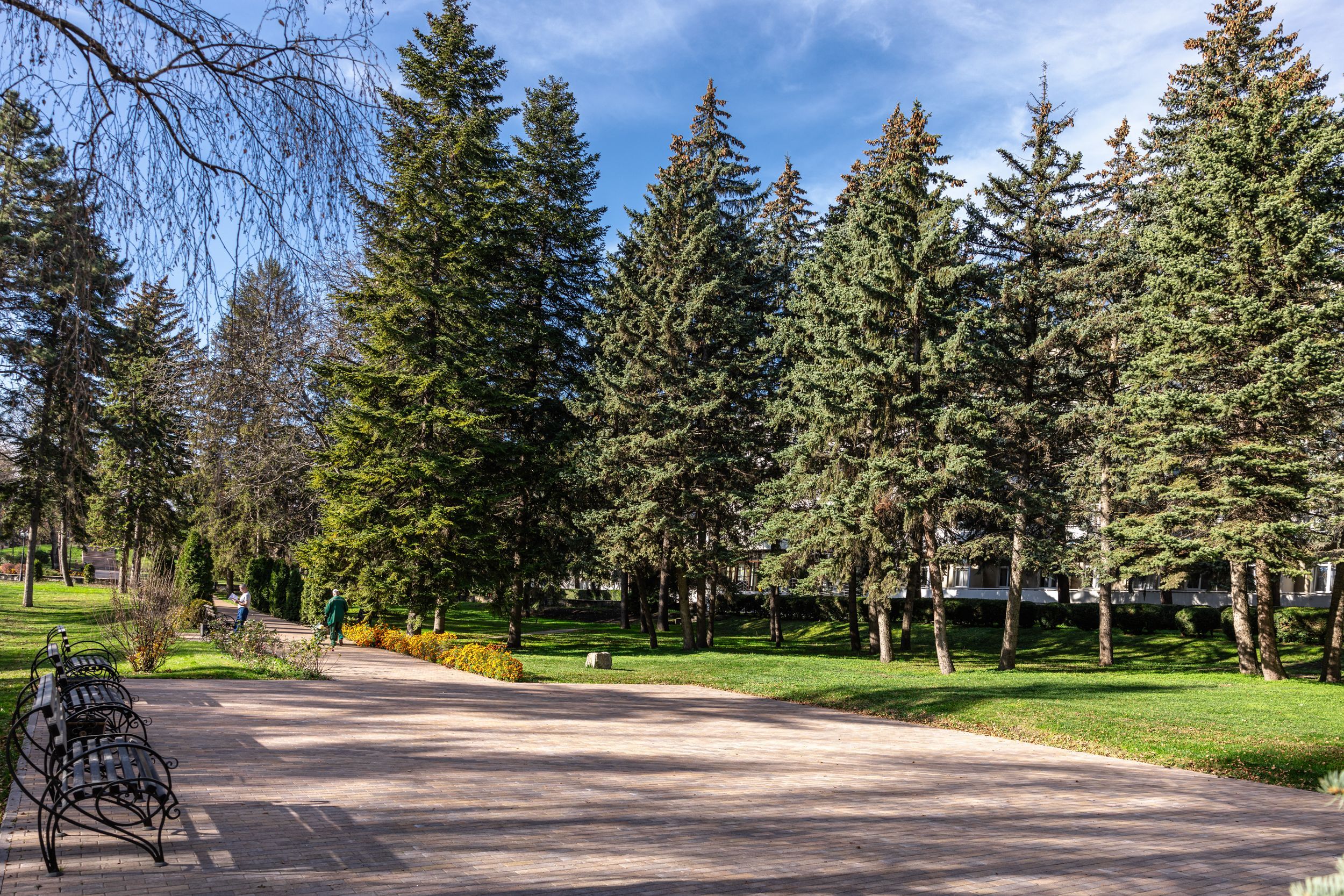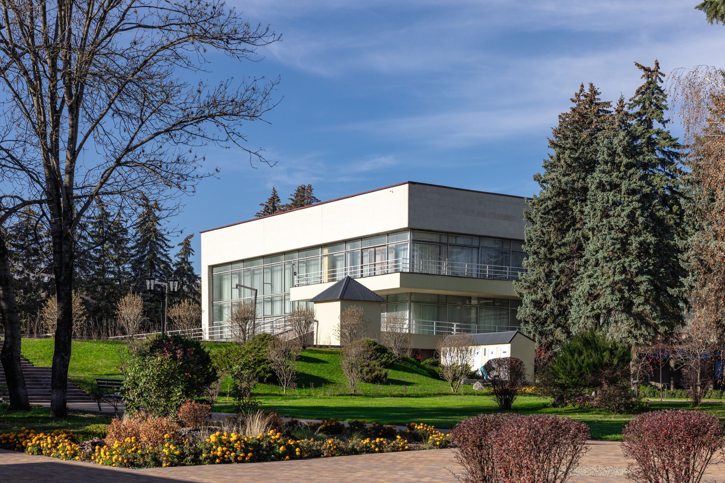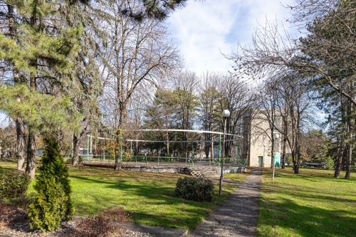 Территория санатория площадью 7 гектаров представляет собой ухоженный парк с удобной инфраструктурой. Все корпуса соединены теплыми переходами, что обеспечивает комфортное перемещение в любую погоду.