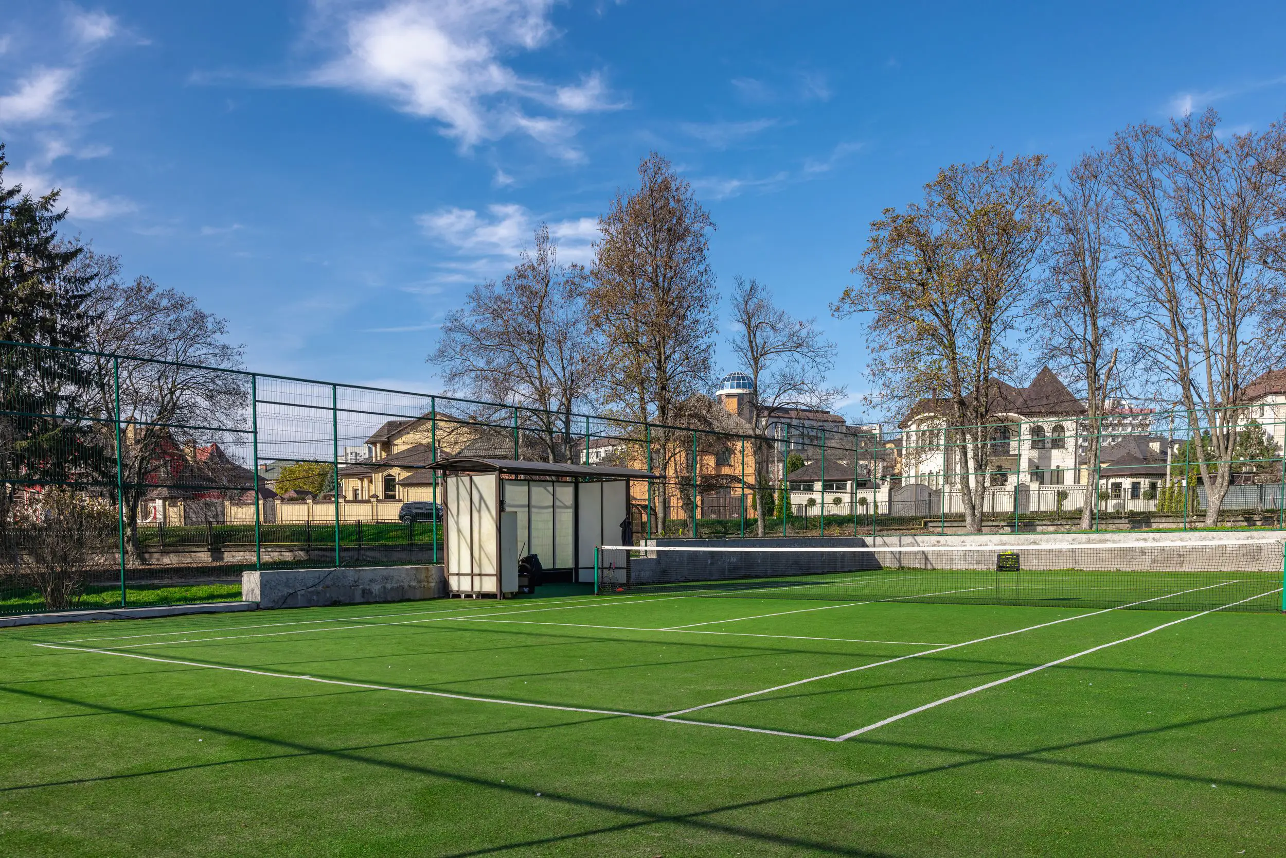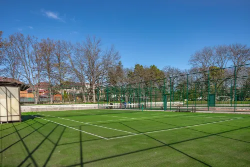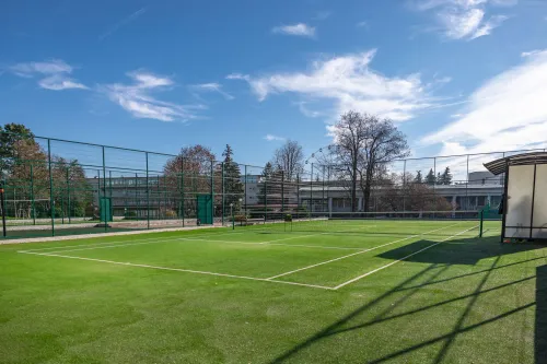 На территории санатория расположен профессиональный теннисный корт с качественным современным покрытием, обеспечивающим комфортную и безопасную игру. Корт предназначен для любителей и тех, кто только начинает знакомство с этим видом спорта.