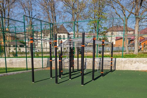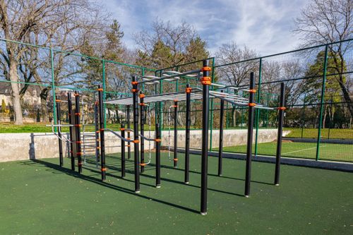 Уличные тренажёры в санатории «Жемчужина Кавказа» — это современное пространство для активного отдыха и оздоровления на свежем воздухе. Площадка оборудована многофункциональным комплексом для воркаута: турники разной высоты, рукоходы, перекладины, брусья, шведская стенка и элементы для развития силы, координации и выносливости. Комплекс выполнен в современном стиле: прочные металлические конструкции с удобными хватами и безопасным покрытием основания.