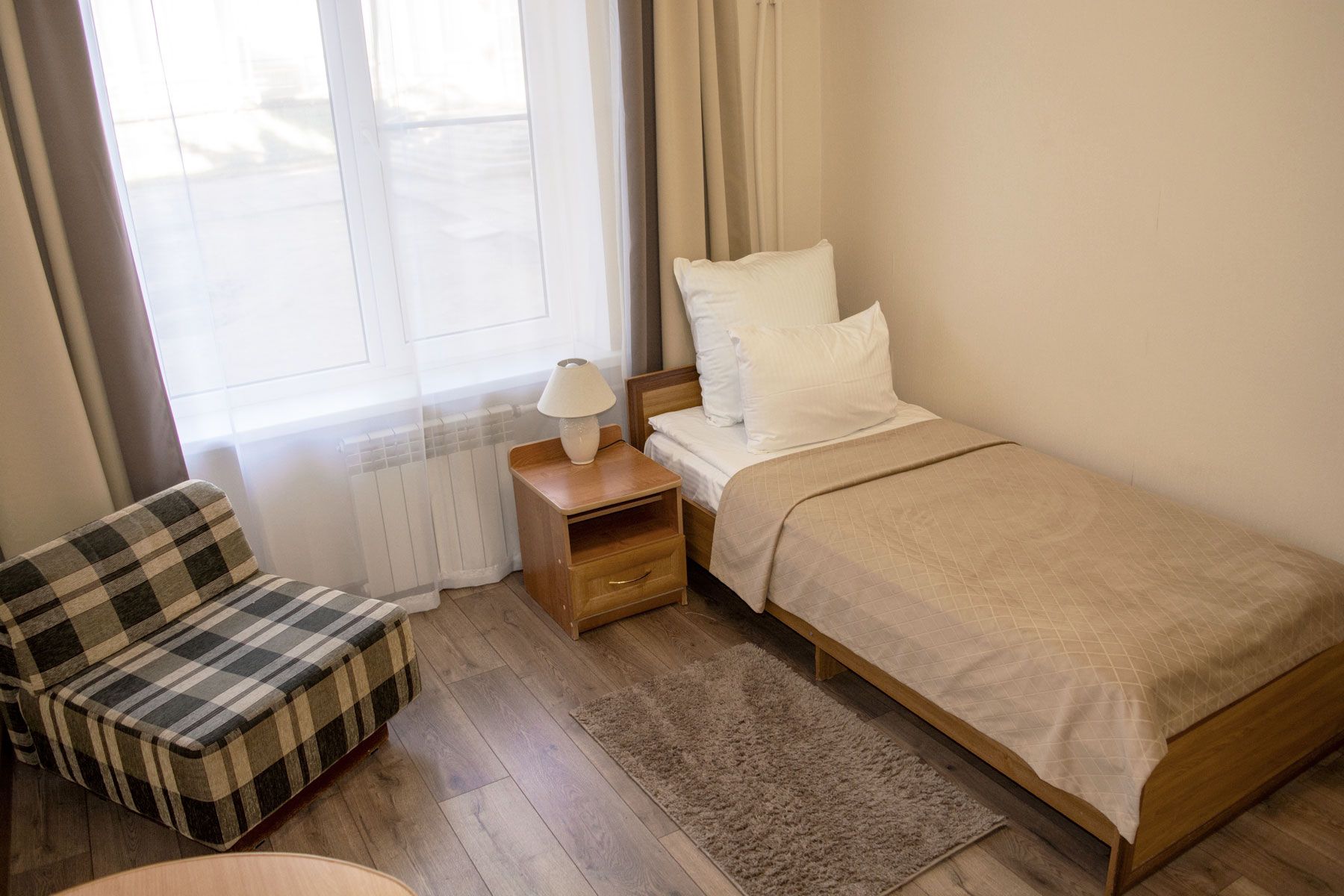 Одноместный номер — уютное пространство, созданное для спокойного отдыха и восстановления сил. Здесь есть всё необходимое для комфортного проживания одного гостя.