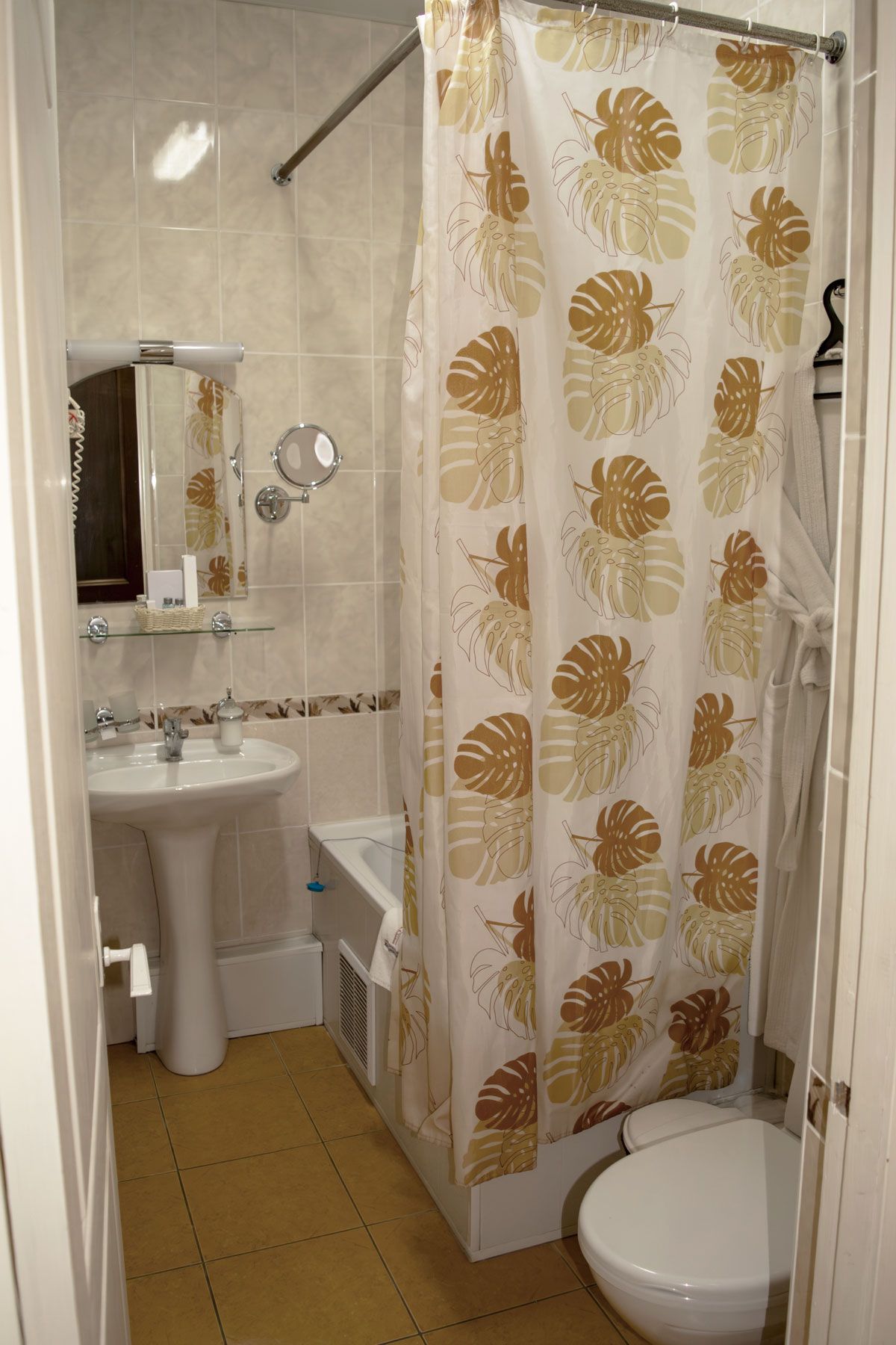 Современный интерьер площадью 19 м² выполнен в спокойных тонах, помогающих расслабиться после лечебных процедур. Номер идеально подходит для тех, кто ценит тишину и личное пространство.